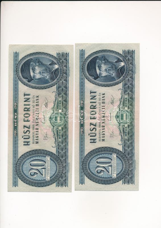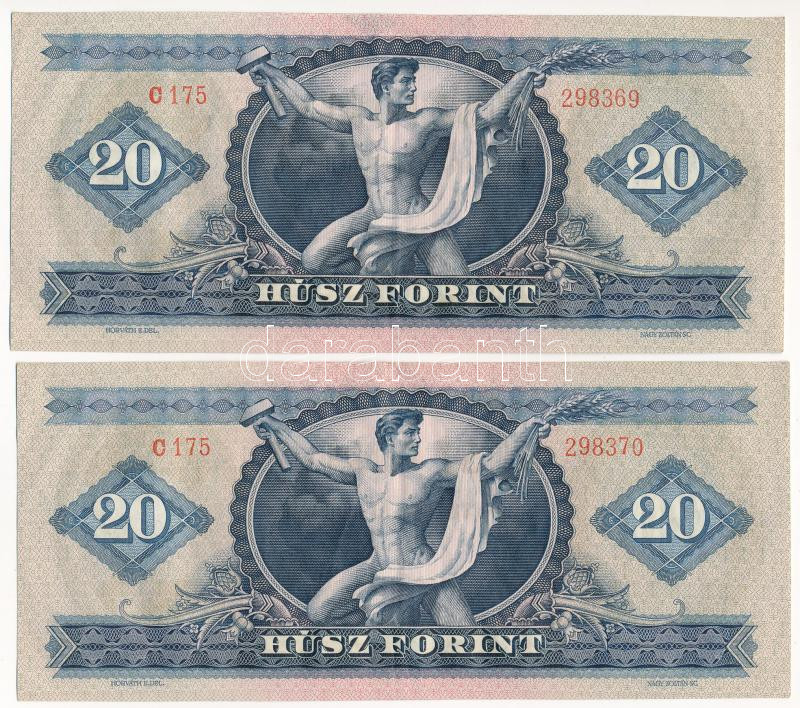 Leírás: 1969. 20Ft (2x) sorszámkövetők "C 175 298369 - C 175 298369" T:F szép papír