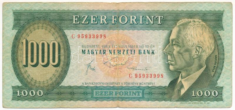 1983. november 10. 1000Ft T:F,VG Adamo F45 https://www.darabanth.com/hu/448-Gyorsarveres/448.0/Numizmatika/Magyar-bankjegyek~500007/1983-november-10-1000Ft-TF-VG-Adamo-F45~II2967280