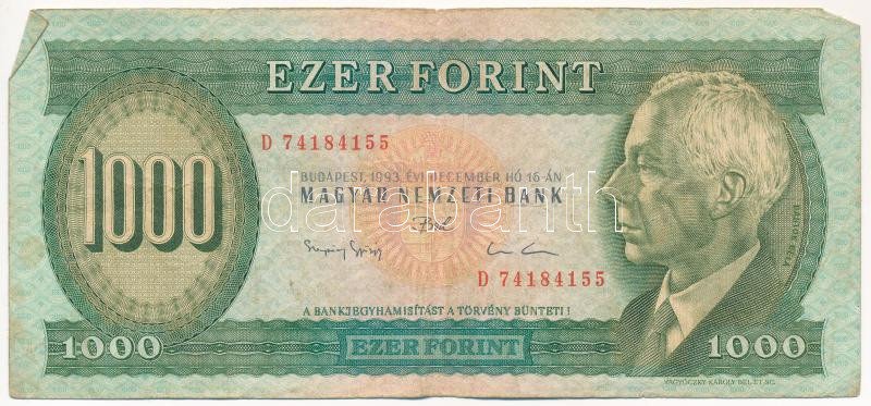Leírás: 1993. 1000Ft "D 74184155" T:F,VG folt
