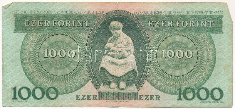 1993. 1000Ft "D 74184155" T:F,VG folt https://www.darabanth.com/hu/448-Gyorsarveres/448.0/Numizmatika/Magyar-bankjegyek~500007/1993-1000Ft-D-74184155-TF-VG-folt~II2910684