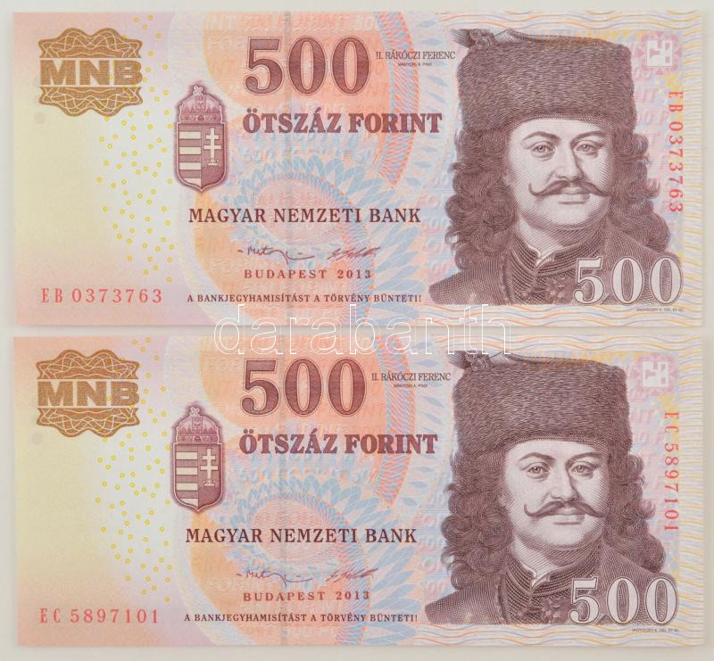 2010. 500Ft "EC" + 2011. 500Ft "EC" T:XF https://www.darabanth.com/hu/448-Gyorsarveres/448.0/Numizmatika/Magyar-bankjegyek~500007/2010-500Ft-EC-plus-2011-500Ft-EC-TXF~II2949165