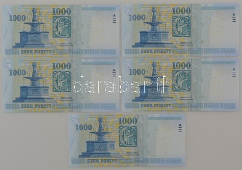 Leírás: 2015. 1000Ft (5x) sorszámkövetők "DE 5532655 - DE 5532659" T:UNC,AU
