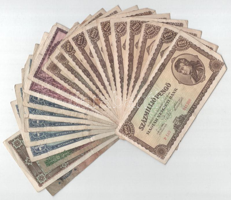 Leírás: 21db-os magyar Pengő bankjegytétel T:F,VG