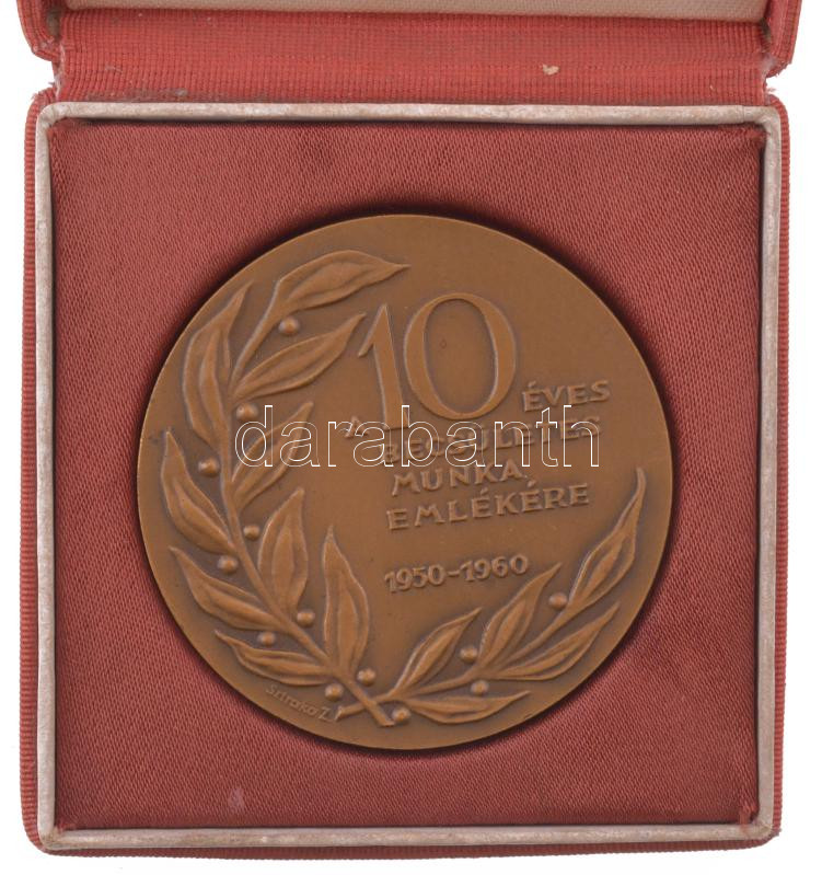 Leírás: 1960. "Fővárosi Nyomdaipari Vállalat 1950-1960 / A 10 éves becsületes munka emlékére" bronz emlékérem dísztokban. Szign.: Sztraka Z. (50mm) T:UNC