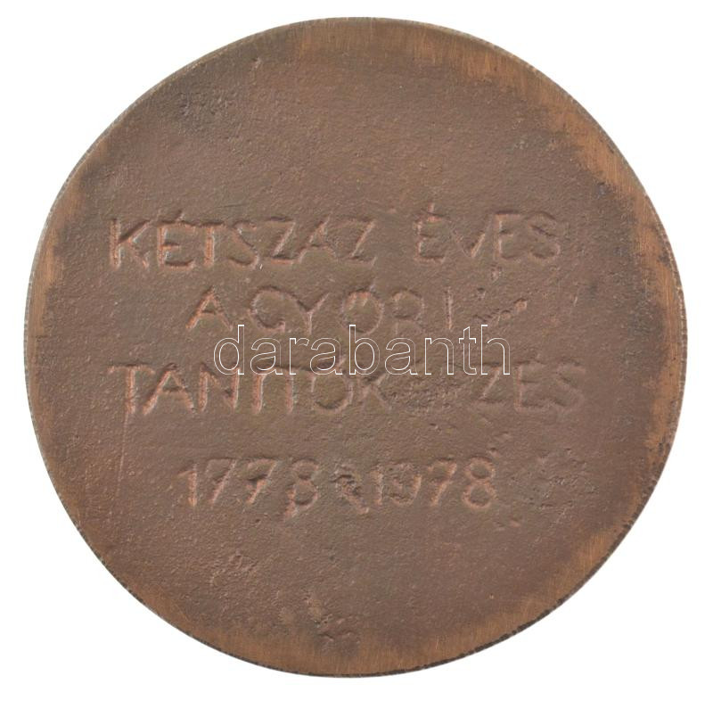 Leírás: 1978. "Kétszáz éves a győri tanítóképzés" bronz emlékplakett. Szign.: FR (80mm) T:XF