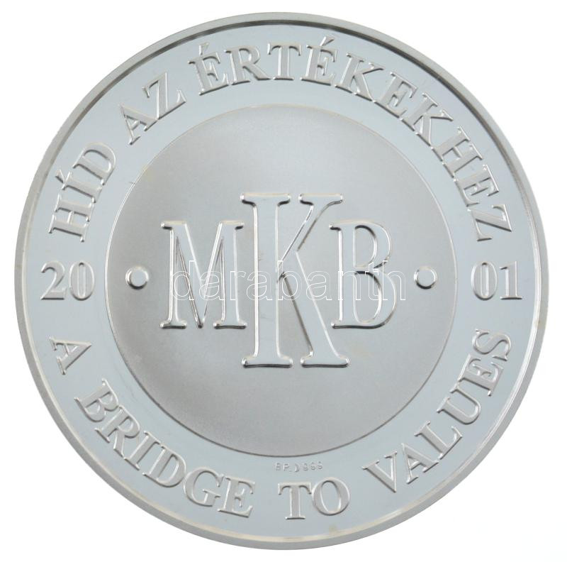 Leírás: 2001. "MKB - Híd az értékekhez / Az első magyar hídpénz 1849" kétoldalas jelzett Ag emlékérem kapszulában (31,22g/0.999/42,5mm) T:PP