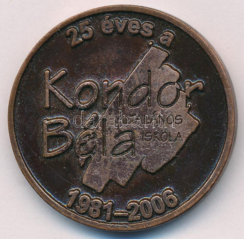 2006. "25 éves a Kondor Béla Általános Iskola 1981-2006" bro... https://www.darabanth.com/hu/448-Gyorsarveres/448.0/Numizmatika/Magyar-emlekveretek-plakettek~500009/2006-25-eves-a-Kondor-Bela-Altalanos-Iskola-1981-2006-bronz-emlekerem-39mm-TXF~II2968489