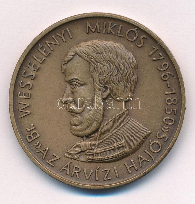 Bognár György (1944-) 1988. "Br. Wesselényi Miklós az Árvízi Hajós / A Pesti Nagy Árvíz 150 éves évfordulójára - M.M. Múzeum Baráti Kör Szécsény" bronz emlékérem (42,5mm) T:AU