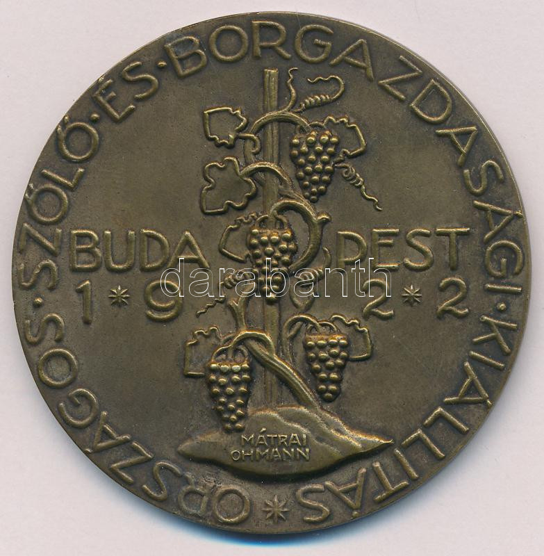 Mátrai Lajos (1875-1966) / Ohmann Béla (1890-) 1922. "Országos Szőlő és Borgazdasági Kiállítás - Budapest 1922" Br emlékérem, "LUDVIG E. BUDAPEST" gyártói jelzéssel a peremén (57mm) T:XF ph.