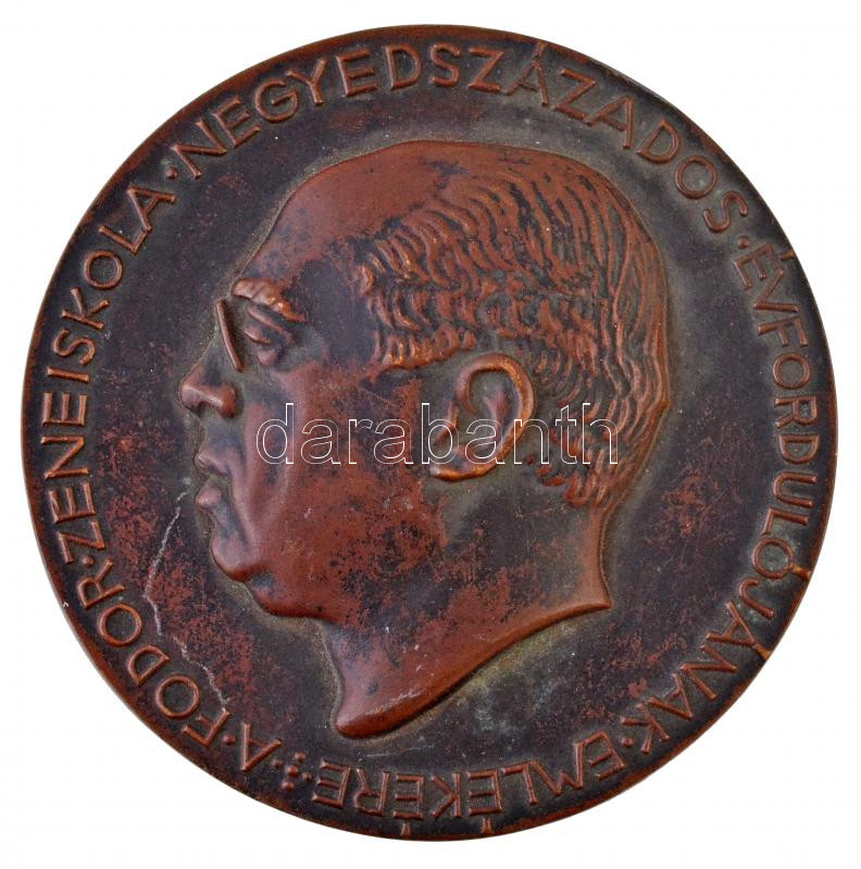 / Hungary 1927. "25th Anniversary of the Fodor School of Music / 1903-1928" Br commemorative plaque. Sign.: József Reményi (245,89g/81mm) C:XF edge error, patina
