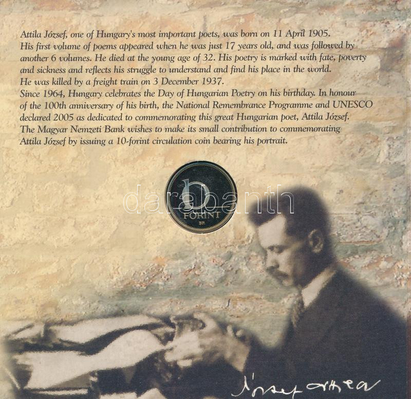2005. 1Ft-100Ft (7xklf) forgalmi sor szettben + 2005. 10Ft "Józse... https://www.darabanth.com/hu/448-Gyorsarveres/448.0/Numizmatika/Magyar-forgalmi-sorok~500021/2005-1Ft-100Ft-7xklf-forgalmi-sor-szettben-plus-2005-10Ft-Jozsef-Attila-a-belso-tok-ragasztas~II2951295