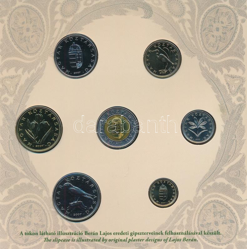 2007. 1Ft-100Ft (7xklf) "Berán Lajos és a pengő" forgalmi sor szettben + "Berán Lajos és a pengő" kétoldalas Ag emlékérem T:BU kis patina, ragasztás kissé engedett Adamo FO41.3