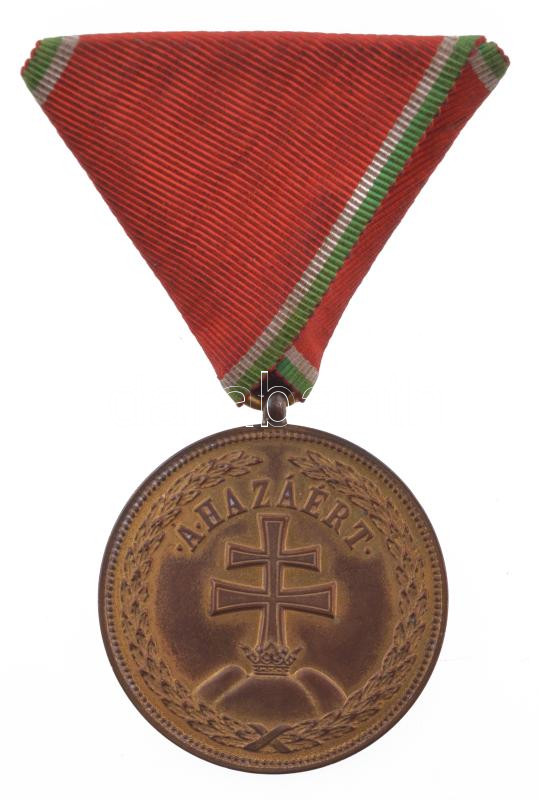 1939. "Magyar Bronz Érdemérem hadiszalagon" aranyozott bronz kitüntetés, fémjellel, hadiszalagon T:AU kopott aranyozás