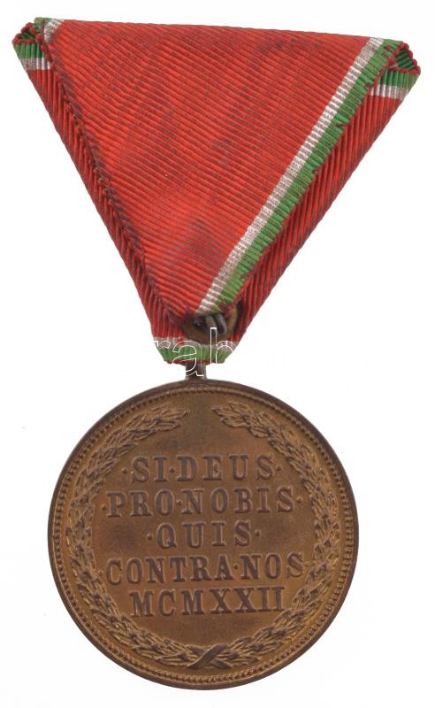 Hungary 1939. "Hungarian Bronze Merit Medal on a war ribbon" gold plated bronze decoration with hallmark and ribbon C:AU worn gilt