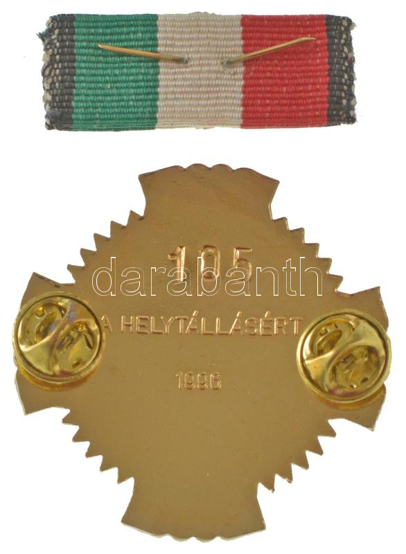 1996. "Igazolt Magyar Szabadságharcos Szövetség / A helytállásért" aranyozott, zománcozott fém kitüntetés "105" sorszámmal, pillangócsattal, szalagsávon miniatűrrel, eredeti tokban T:AU