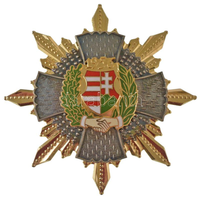 ~1990-2000. "Igazolt Magyar Szabadságharcos Szövetség Érdemcsillag" aranyozott, zománcozott fém kitüntetés, miniatűrrel díszdobozban (70x70mm) T:UNC / Hungary ~1990-2000. "Hungarian Proved Association of War of Independence Merit Star" gilt, enamelled metal medallion with miniature on thin ribbon, in original case (70x70mm) C:UNC