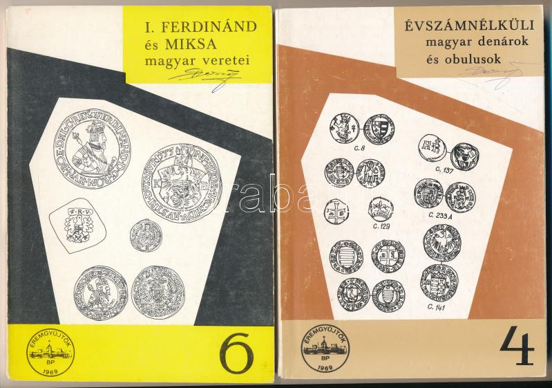 Pohl Artúr: Évszámnélküli magyar denárok és obulusok 1308-1502. Magyar Éremgyűjtők Egyesülete, Budapest, 1972. + Zaláni Béla: A Habsburgok magyar veretei I. - I. Ferdinánd és Miksa magyar veretei. Magyar Éremgyűjtők Egyesülete, Budapest, 1972. Használt, jó állapotban, az egyiknek megtört a gerince.