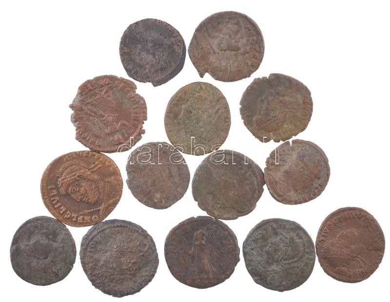 Római Birodalom 14db-os bronz érmetétel a ~III-IV. századból, közte Valens, II. Julianus stb. T:XF-VG