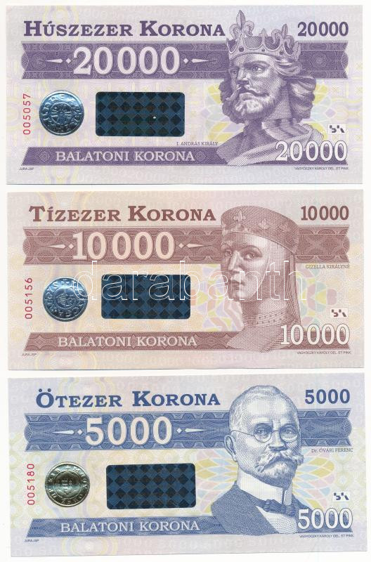 2012. 500 Balatoni Korona + 1000 Balatoni Korona + 2000 Balatoni Korona + 5000 Balatoni Korona + 10.000 Balatoni Korona + 20.000 Balatoni Korona mind, "AZ UTALVÁNY ÉRVÉNYES 2020. DECEMBER 31-IG" matricával. Teljes sor! T:UNC