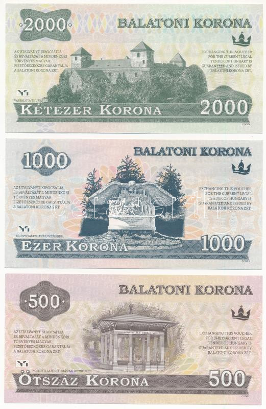 Hungary 2012. 500 Balatoni Korona + 1000 Balatoni Korona + 2000 Balatoni Korona + 5000 Balatoni Korona + 10.000 Balatoni Korona + 20.000 Balatoni Korona, local money, all with "Valid until 31th December 2020" stamp C:UNC