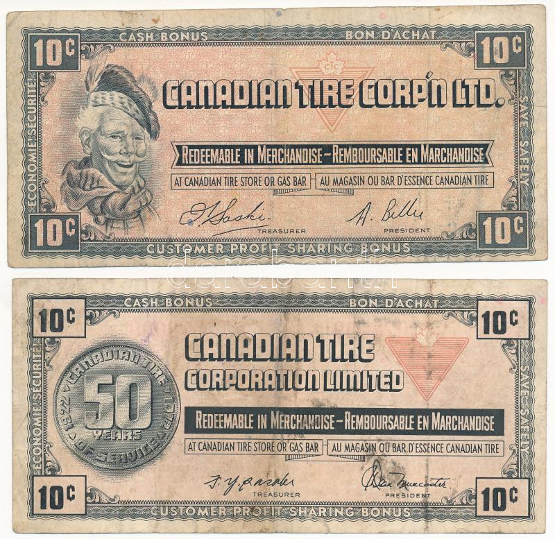 Kanada 1961. 10c "Canadian Tire Corporation" + 1972. 10c &qu... https://www.darabanth.com/hu/448-Gyorsarveres/448.0/Numizmatika/Papir-es-fem-szuksegpenzek~500006/Kanada-1961-10c-Canadian-Tire-Corporation-plus-1972-10c-Canadian-Tire-Corporation-50-evforduloj~II2920178