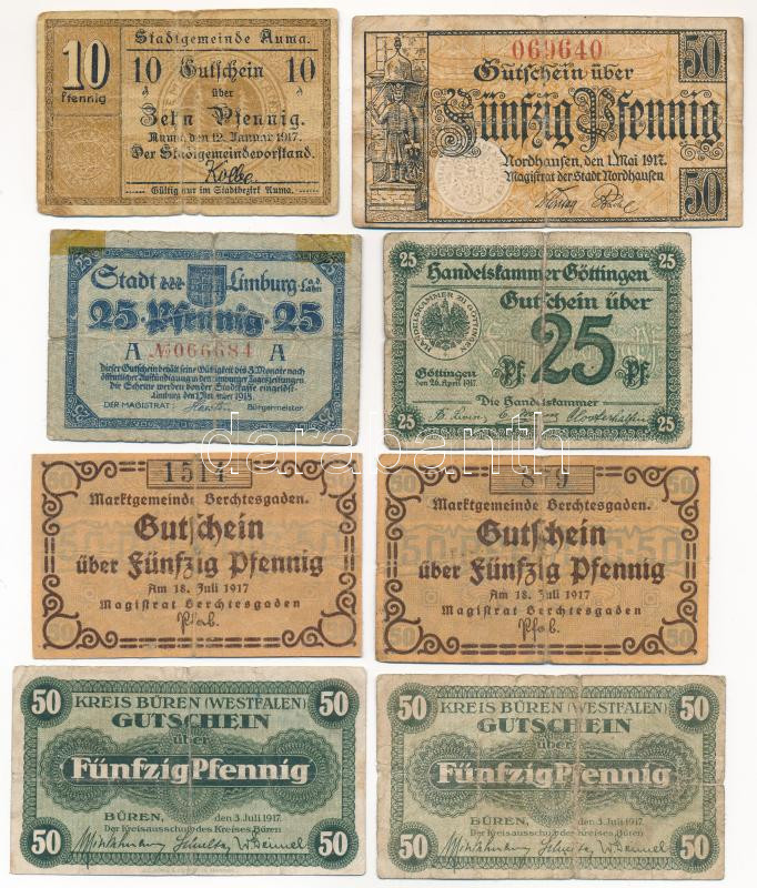Német Birodalom 1917-1918. 8db-os vegyes szükségpénz tétel, közte Büren, Berchtesgaden T:F,VG