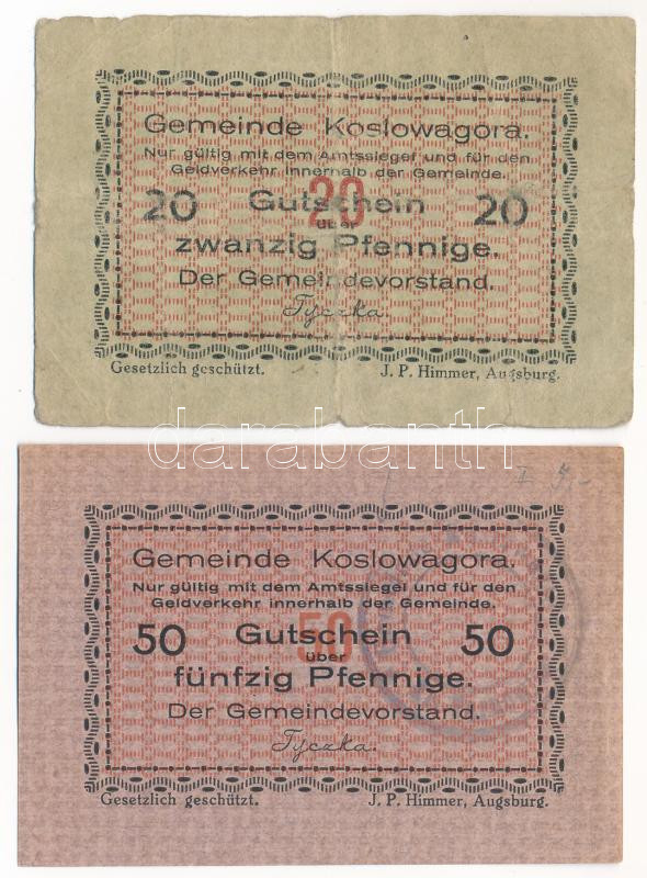 German Empire / Koslowagora ~1917. 20 Pfennig + 50 Pfennig, both with stamp C:AU-F