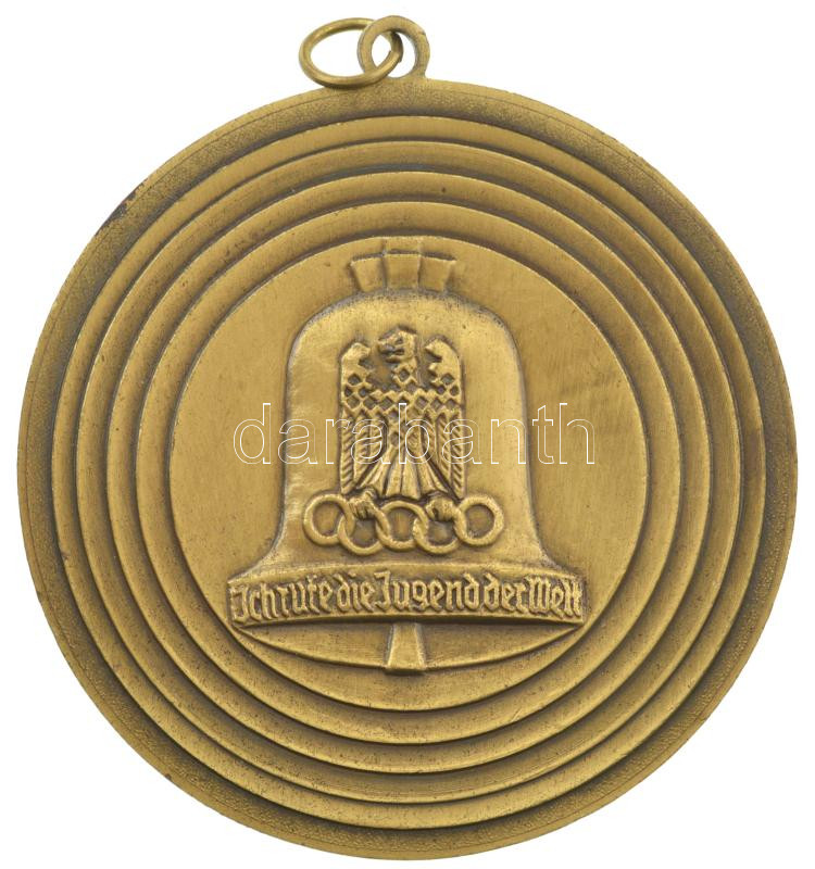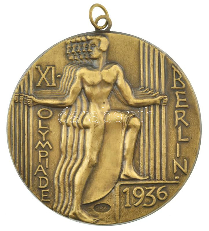 Leírás: DN Az 1936 "XI. Olimpia Berlin" résztvevői érmének jelzett modern másolata, füllel (80mm) C:AU