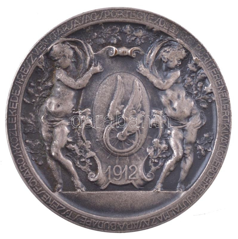 1912. "Budapest Székesfőváros Közlekedési Részvénytársaság Sportegyesülete a sport terén elért kiváló kiváló érdemek jutalmazására - 1912" ezüstözött bronz díjérem (35mm) T:AU patina, kissé kopott ezüstözés