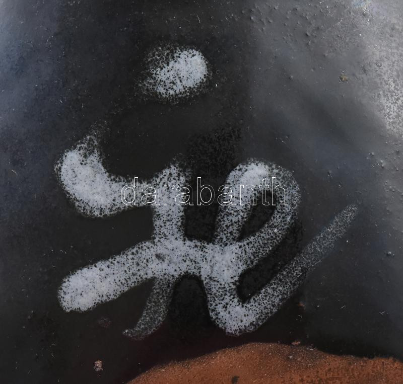 Leírás: Gorka Lívia (1925-2011): Fekete-narancs kínáló, festett mázas kerámia, jelzett, hibátlan, d: 12 cm