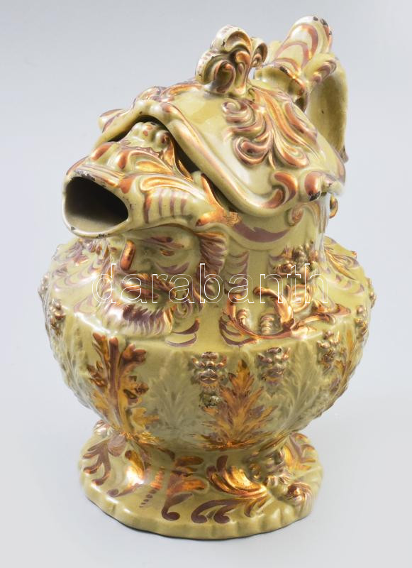 Leírás: Jelzés nélkül: Sárkányos kiöntő. Kézzel festett, kis mázhibákkal 26 cm