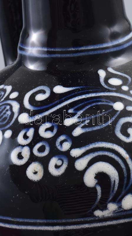 Leírás: Királykék iparművész kancsóváza, mázas kerámia, jelzéssel, hibátlan, m: 23 cm