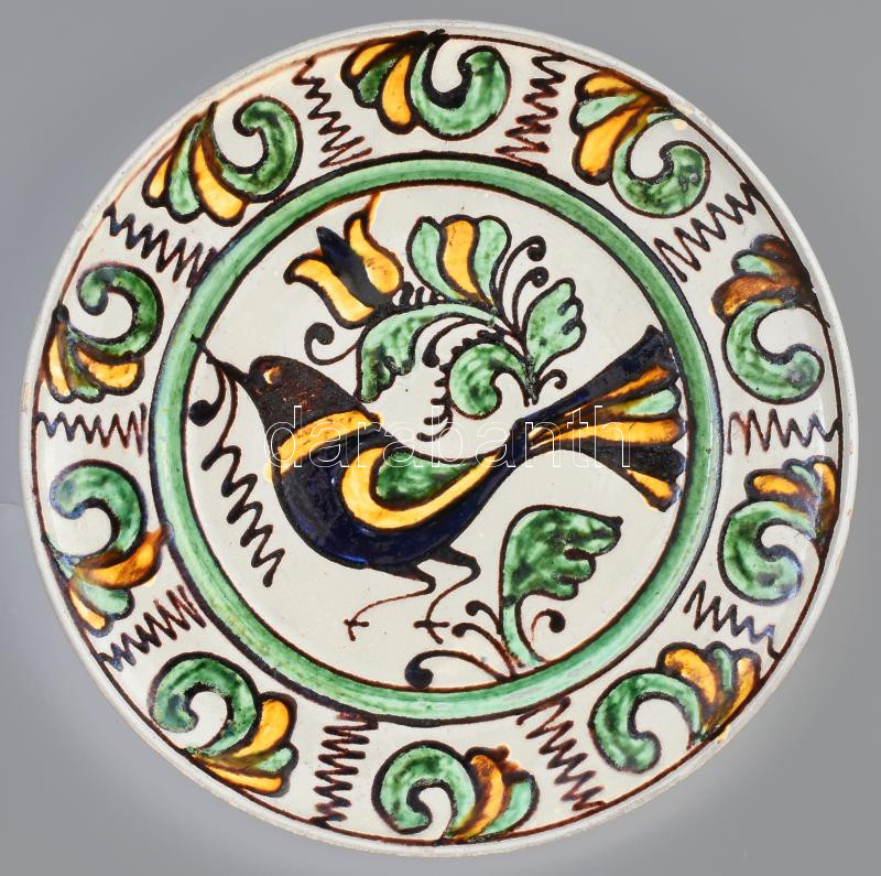 Leírás: Páll Antal Korond 1971 Madaras falitál, jelzéssel, kopással, d: 25,5 cm