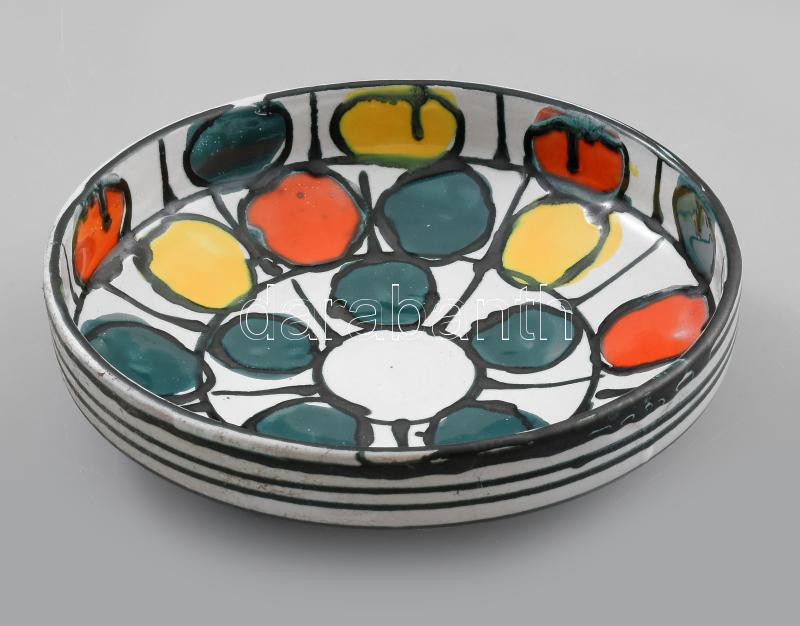 Leírás: Szombathy Zsuzsa: Retró kerámia tál, jelzett, kopással, d: 19 cm