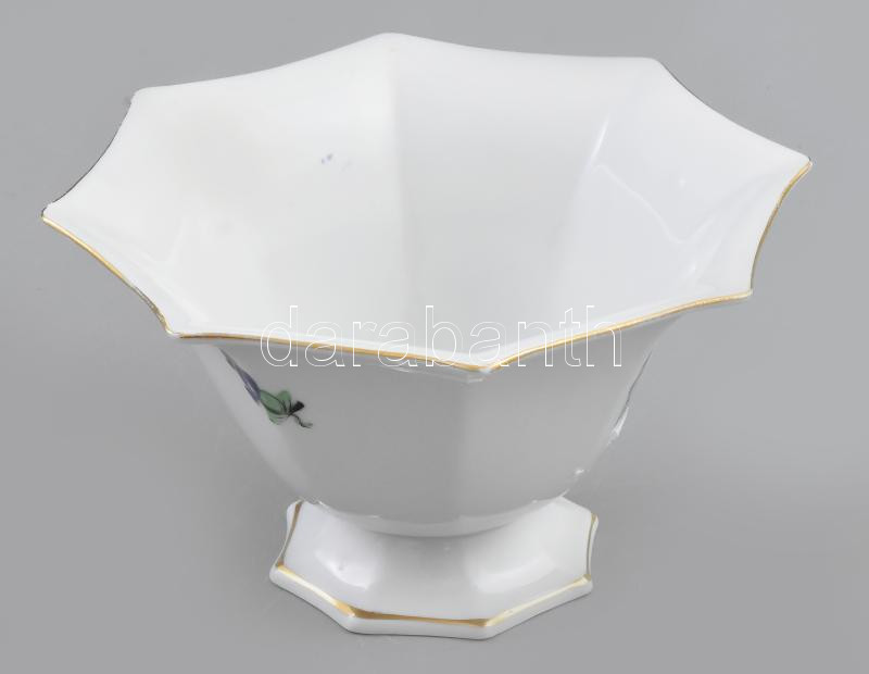 Leírás: Herendi ernyő alakú kínáló, másodosztályú jelzéssel, minimális kopottsággal, d: 15,5 cm, m: 9 cm