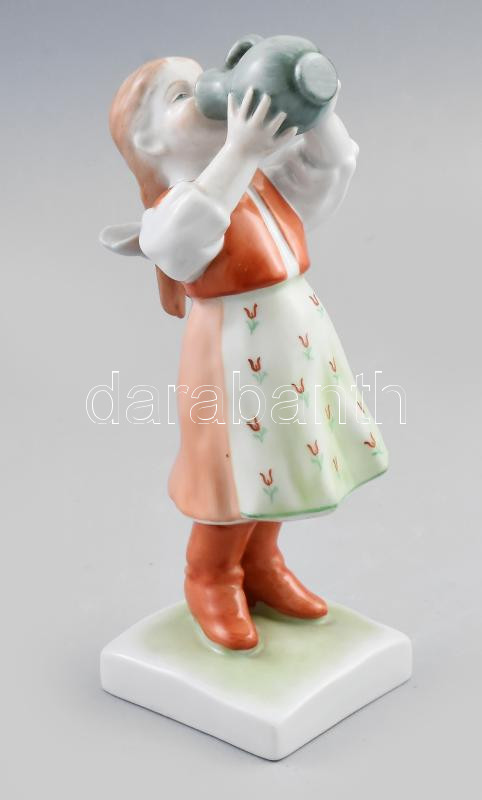 Leírás: Herendi vízivó lány, jelzéssel, szoknyán gyári mázazási hibával, egyébként hibátlan, m: 20,5 cm