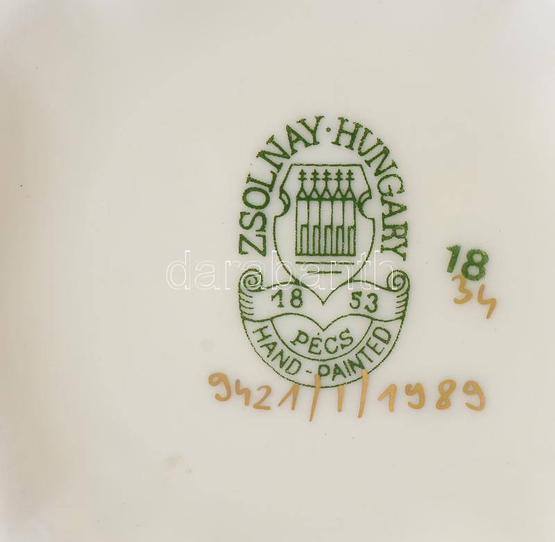Leírás: Zsolnay virágmintás bonbonier, jelzéssel, hibátlan, 7,5x7,5 cm