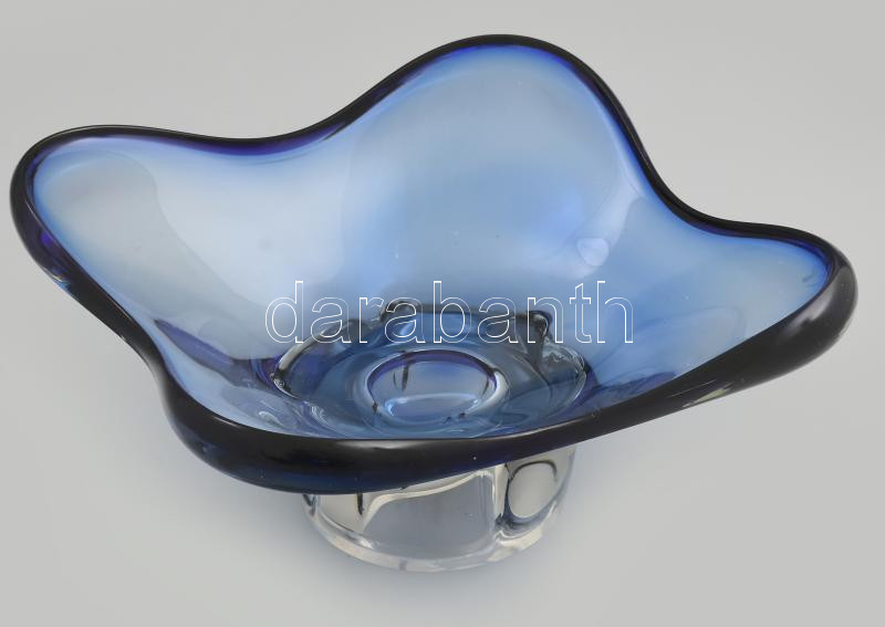 Leírás: Cseh kéküveg kínáló, jelzés nélkül, kopással, d: 27 cm, m: 11 cm