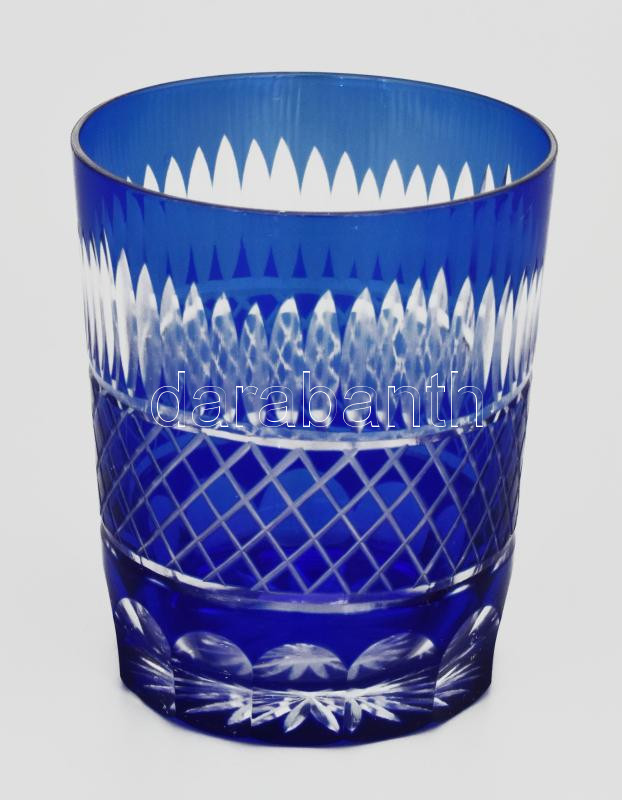 Leírás: Dúsan csiszolt kristály kék whiskey pohár, 6 db, original dobozban, hibátlan, m: 10 cm