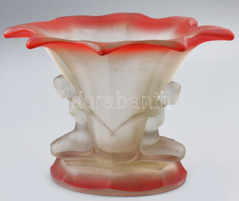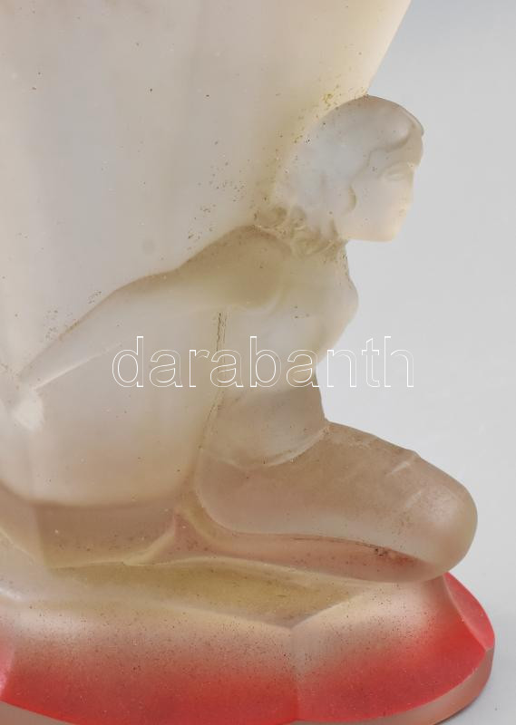 Leírás: cca 1930 Walther & Söhne antik art deco női alakos üvegváza, festett és savmaratott, jelzés nélkül, minimális kopással, 28x19x20 cm