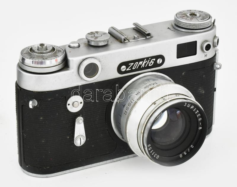 1964 Zorkij-6 távmérős fényképezőgép, Jupiter 8 2/50 mm objektívvel, e... https://www.darabanth.com/hu/449-Gyorsarveres/449.0/Fotomuveszet/Fenykepezogepek-kamerak-kellekek~500013/1964-Zorkij-6-tavmeros-fenykepezogep-Jupiter-8-250-mm-objektivvel-eredeti-bor-tokjaban~II2978674
