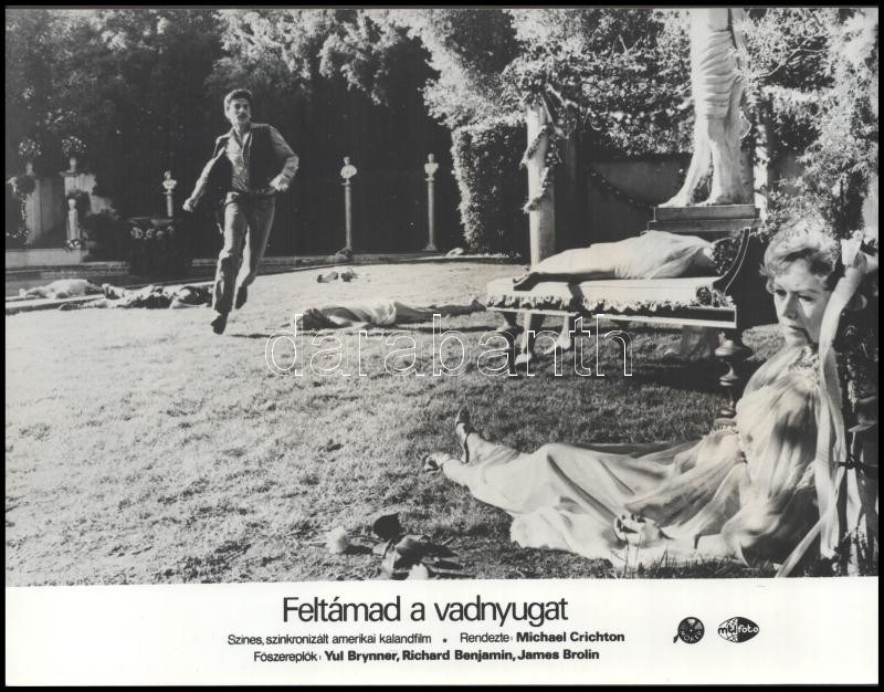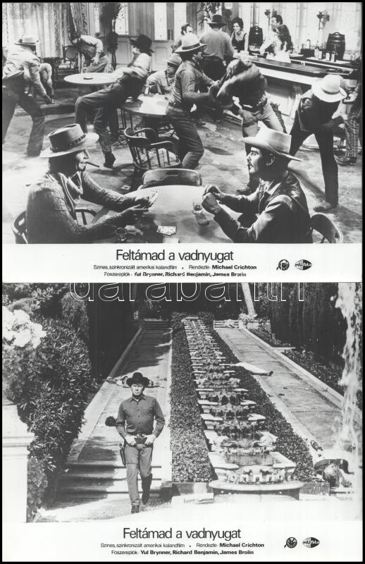 cca 1973 ,,Feltámad a vadnyugat" című amerikai kalandfilm jelenetei és szereplői, 7 db vintage produkciós filmfotó ezüst zselatinos fotópapíron, a használatból eredő (esetleges) kisebb hibákkal, 18x24 cm