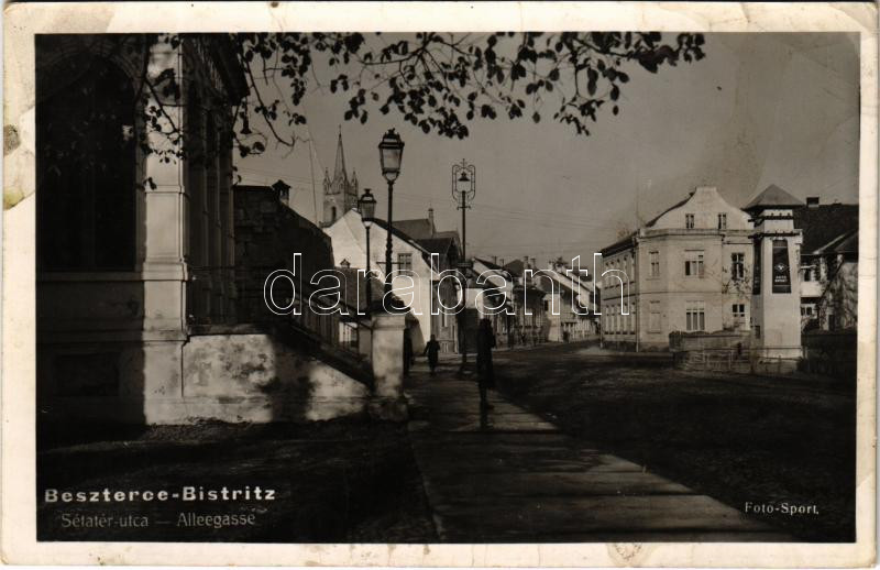 1940 Beszterce, Bistritz, Bistrita; Sétatér utca, Foto-Sport reklám / ... https://www.darabanth.com/hu/449-Gyorsarveres/449.0/Kepeslapok/Erdely~1000007/1940-Beszterce-Bistritz-Bistrita-Setater-utca-Foto-Sport-reklam-Alleegasse-promenade-stre~II2975494