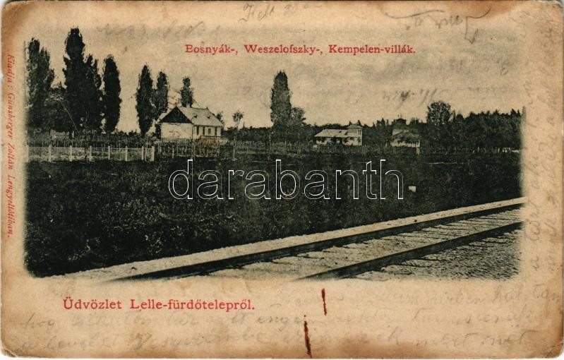 1901 Balatonlelle, Lelle fürdőtelep, Bosnyák-, Weszelofszky és Kempele... https://www.darabanth.com/hu/449-Gyorsarveres/449.0/Kepeslapok/Magyarorszag~1000006/1901-Balatonlelle-Lelle-furdotelep-Bosnyak-Weszelofszky-es-Kempelen-villa-Kiadja-Gunsberge~II2979835