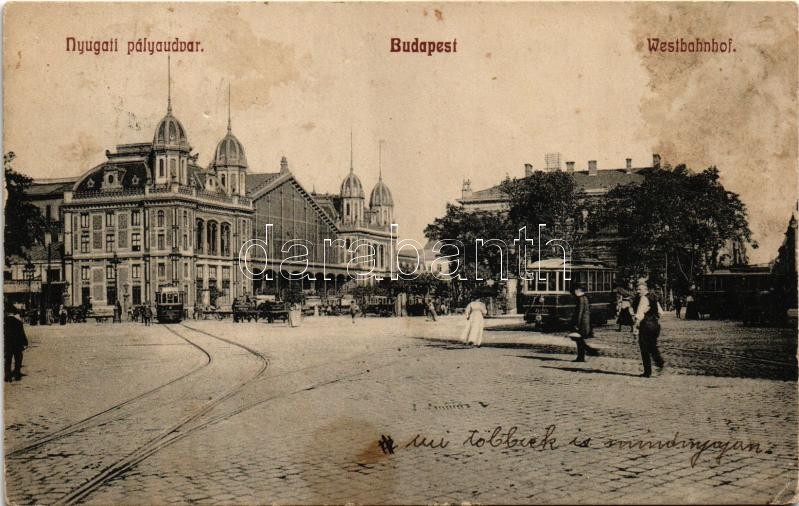 1911 Budapest VI. Nyugati pályaudvar, vasútállomás, villamosok (fl) https://www.darabanth.com/hu/449-Gyorsarveres/449.0/Kepeslapok/Magyarorszag~1000006/1911-Budapest-VI-Nyugati-palyaudvar-vasutallomas-villamosok-fl~II2984378