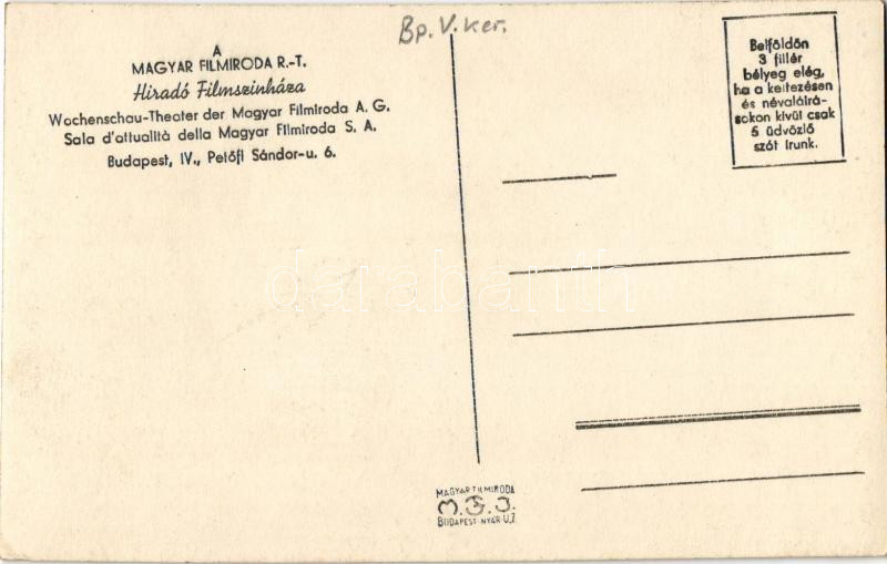 Budapest V. A Magyar Filmiroda rt. Híradó filmszínháza, mozi belső. Pe... https://www.darabanth.com/hu/449-Gyorsarveres/449.0/Kepeslapok/Magyarorszag~1000006/Budapest-V-A-Magyar-Filmiroda-rt-Hirado-filmszinhaza-mozi-belso-Petofi-Sandor-utca-6~II2982915