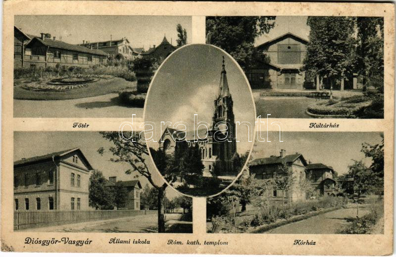Diósgyőr (Miskolc), Vasgyár, Főtér, Kultúrház, Állami iskola, római ka... https://www.darabanth.com/hu/449-Gyorsarveres/449.0/Kepeslapok/Magyarorszag~1000006/Diosgyor-Miskolc-Vasgyar-Foter-Kulturhaz-Allami-iskola-romai-katolikus-templom-kor~II2981910