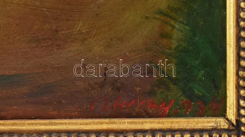 Leírás: Olvashatatlan jelzéssel: Kitüntetésekkel dekorált, I. világháborús magyar huszár portréja. Olaj, karton. Dekoratív fakeretben. 68x50 cm
