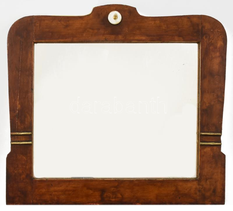 Leírás: Szecessziós tükör, fakeretben, gyöngyház díszítéssel, kis kopással, 36x33 cm