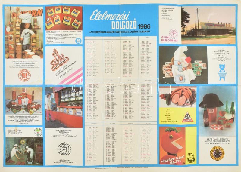 1986 Élelmezési Dolgozó , az Élelmezésipari Dolgozók Szakszervezete la... https://www.darabanth.com/hu/449-Gyorsarveres/449.0/Mutargy-papirregiseg-egyeb/Plakat~2000006/1986-Elelmezesi-Dolgozo-az-Elelmezesipari-Dolgozok-Szakszervezete-lapjanak-falinaptara-Ha~II2981743
